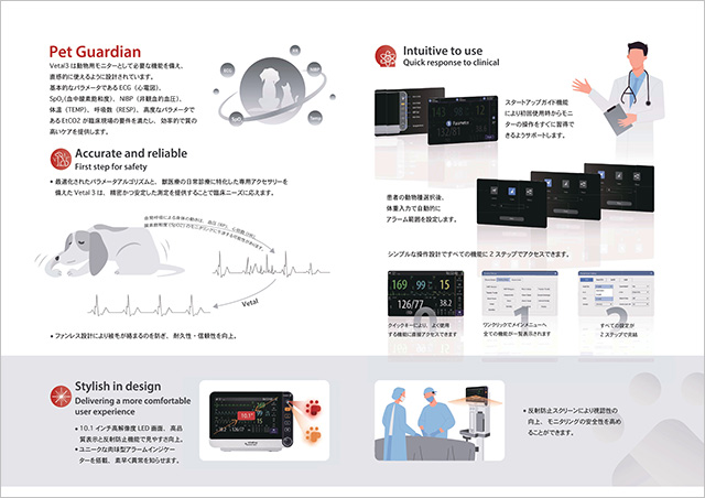 ・標準仕様測定項目:ECG、SpO2、NIBP、体温、RR